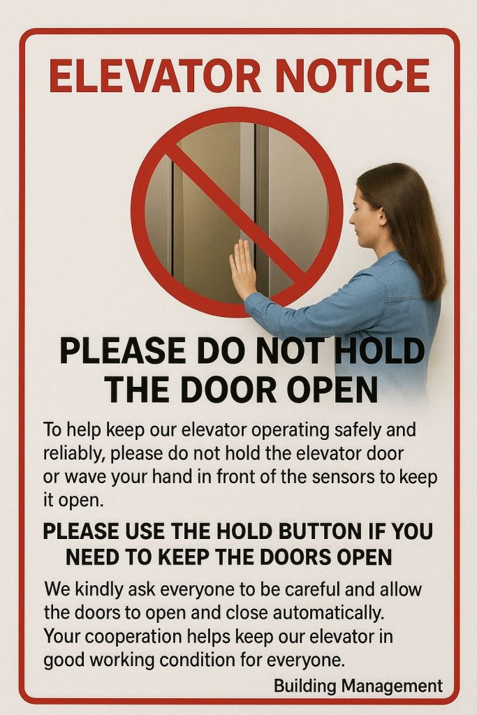 Elevator Notice – Use Hold Buttons